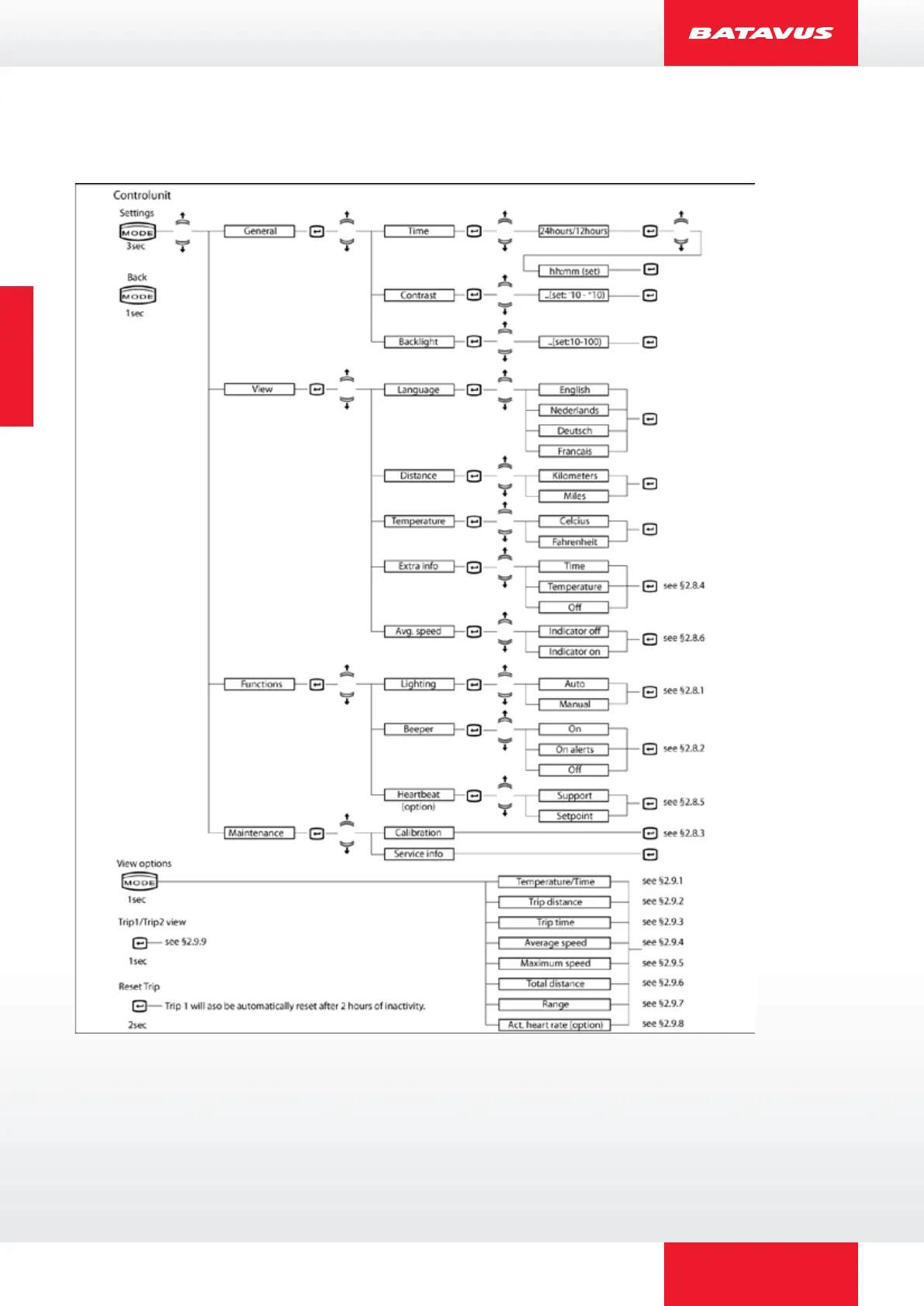 Batavus ION - Menu Overview and Settings