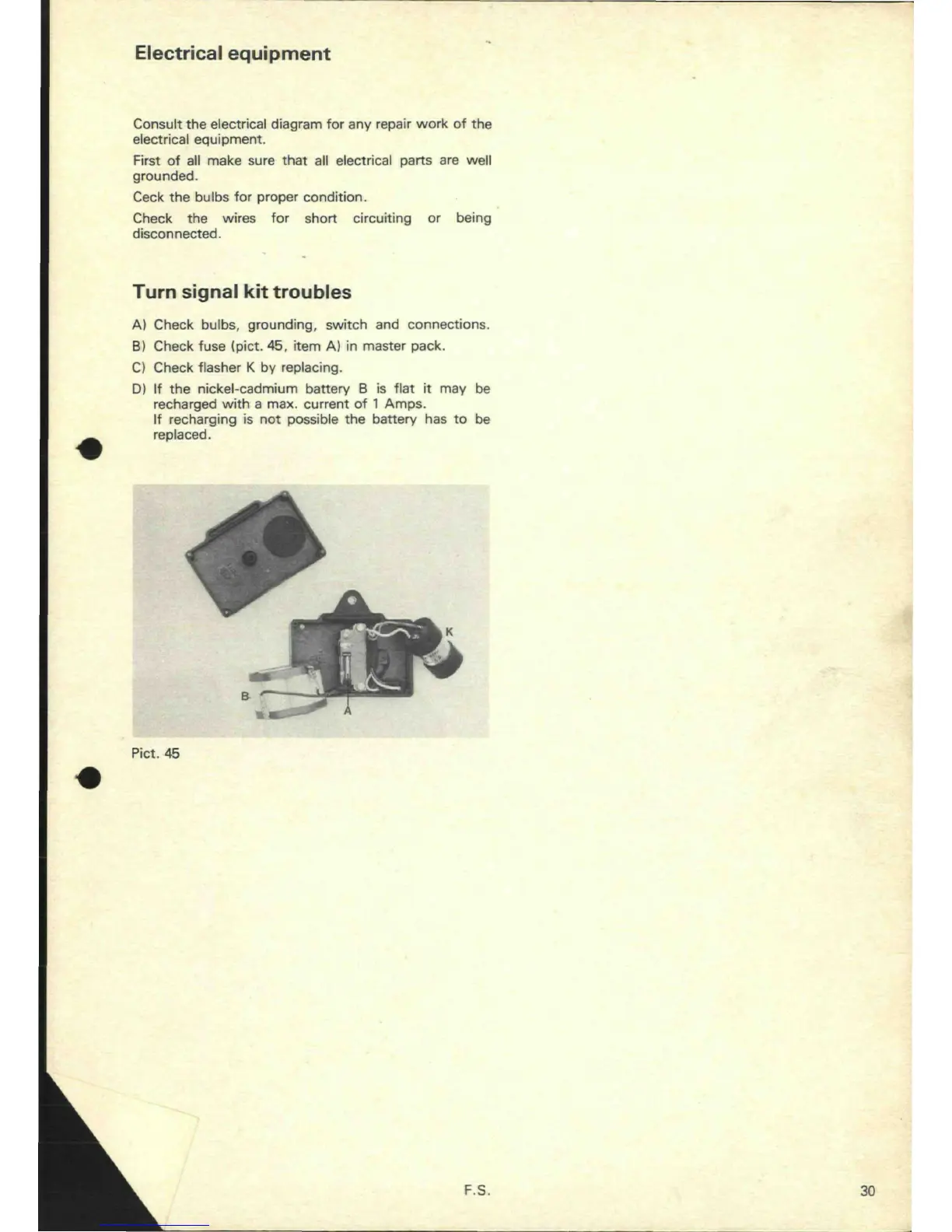 B) Check fuse (pict. 45, item A) in master pack.