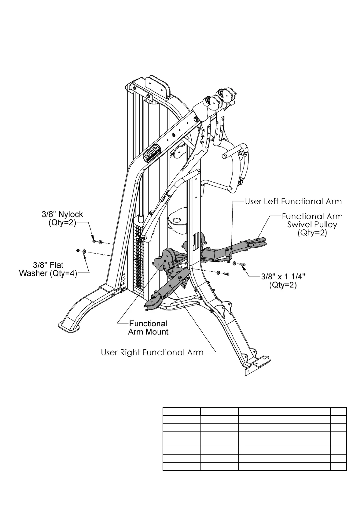 All Flat Washers and Nylocks are 3/8” unless otherwise noted.