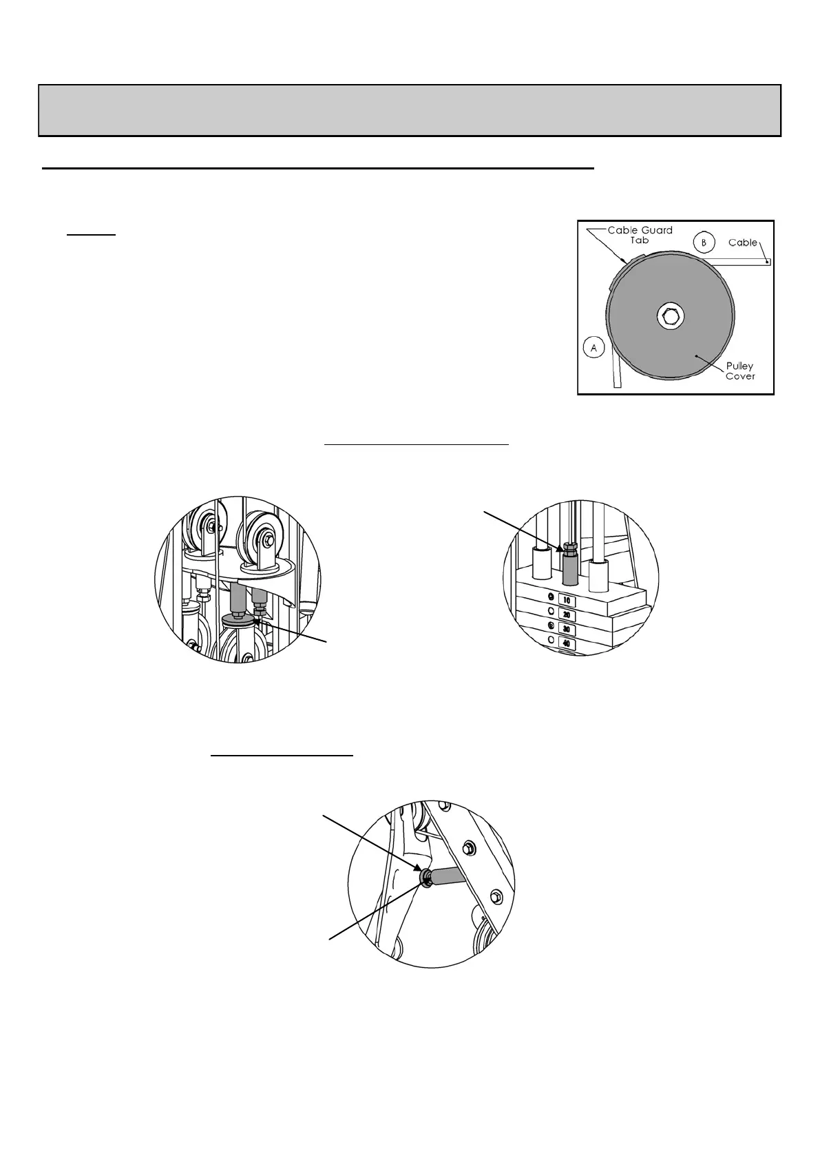 Position the cable guard tab on the Pulley Cover so that the tab prevents the cable from