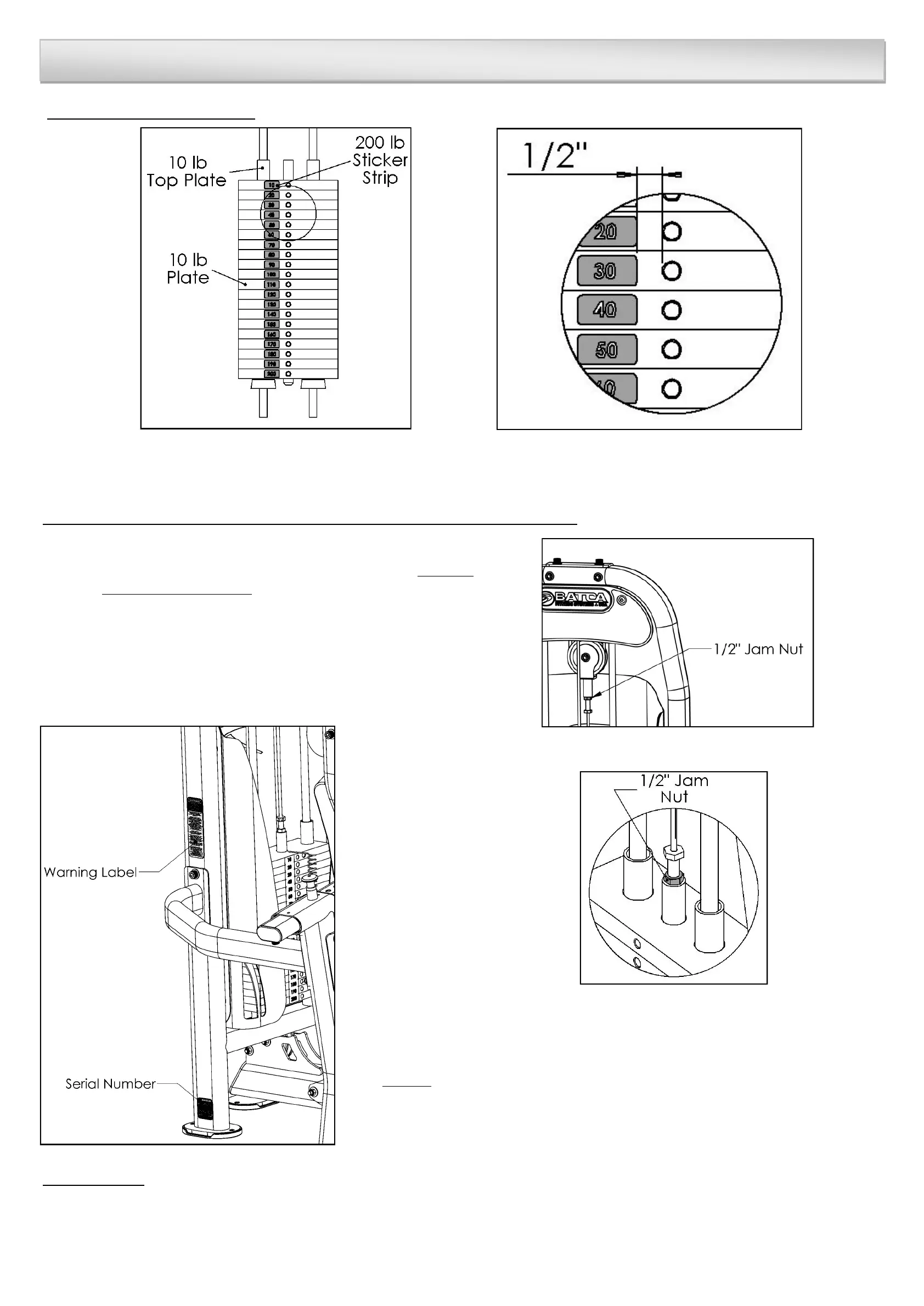 weight stack. Each must also be secured with a 1/2” Jam