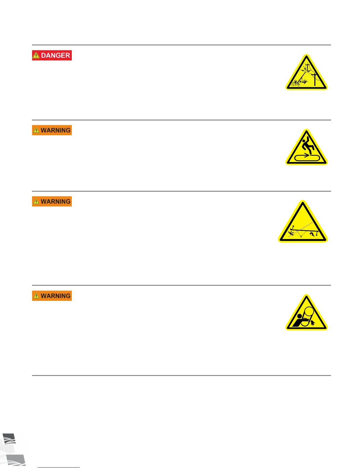 • Have another trained person nearby who can shut down the conveyor in case of accident.