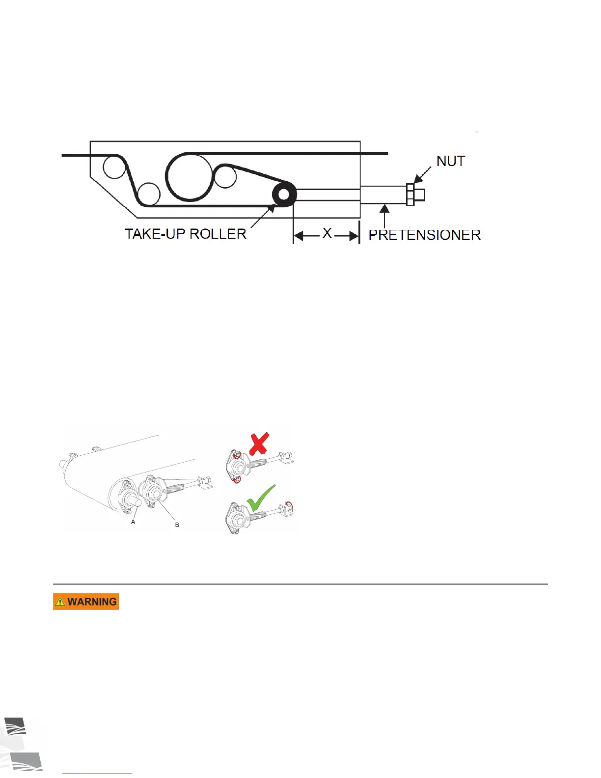 3. After the conveyor belt has been tensioned, check the alignment of all s-drive rollers, see Section 6.12. –