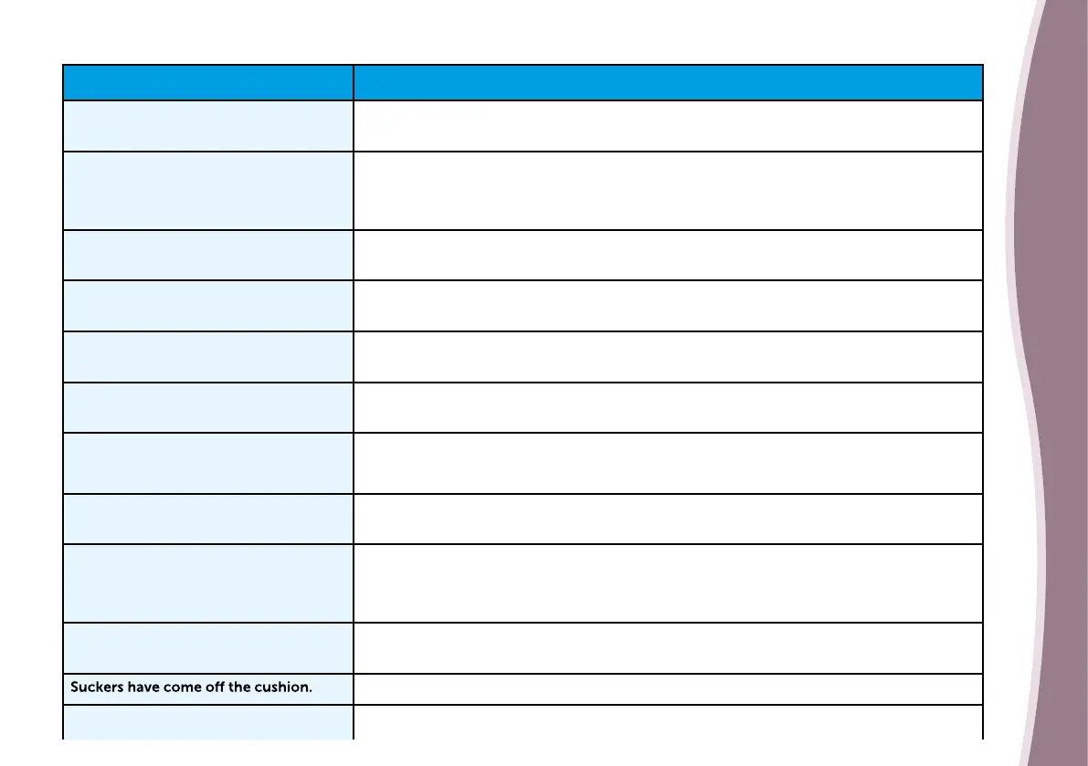 Air is escaping into the bath water. DO NOT USE There is a fault with the cushion or hose. Contact your dealer for advice.