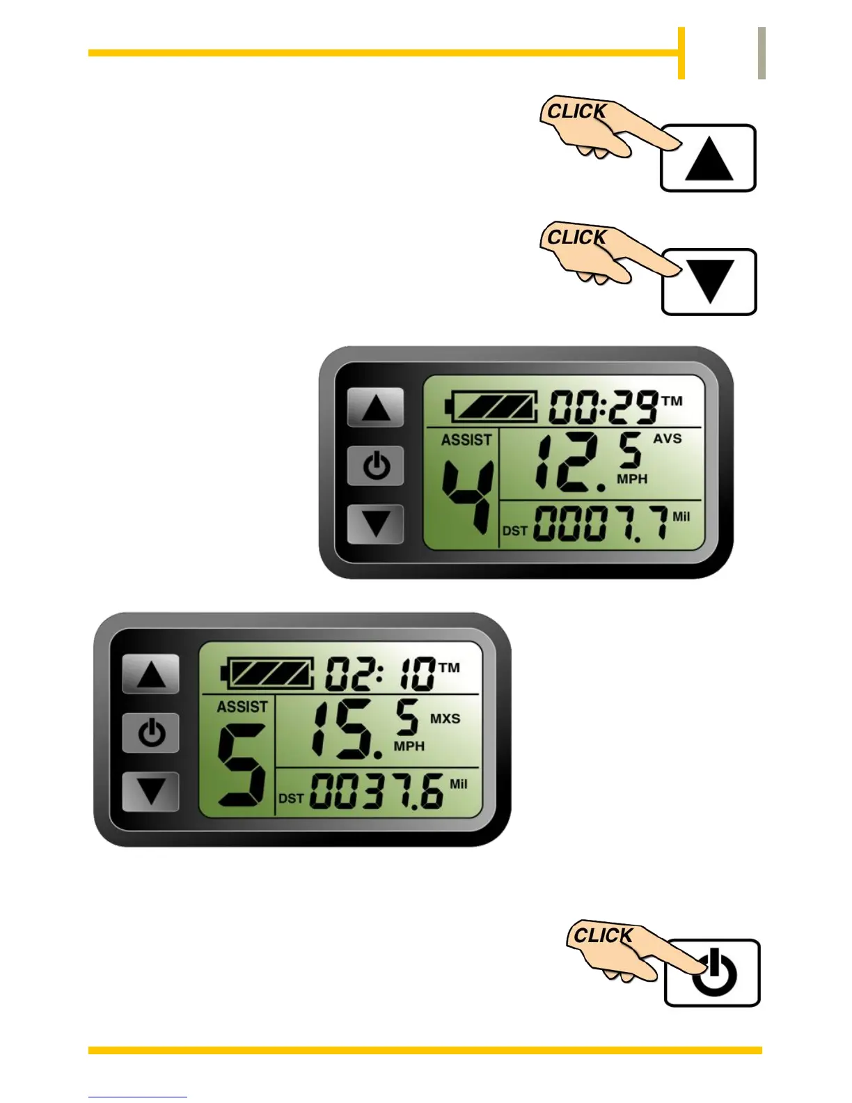 Batribike Diamond - Displaying Average Speed (AVS); Displaying Maximum Speed (MXS); Returning to Normal Display