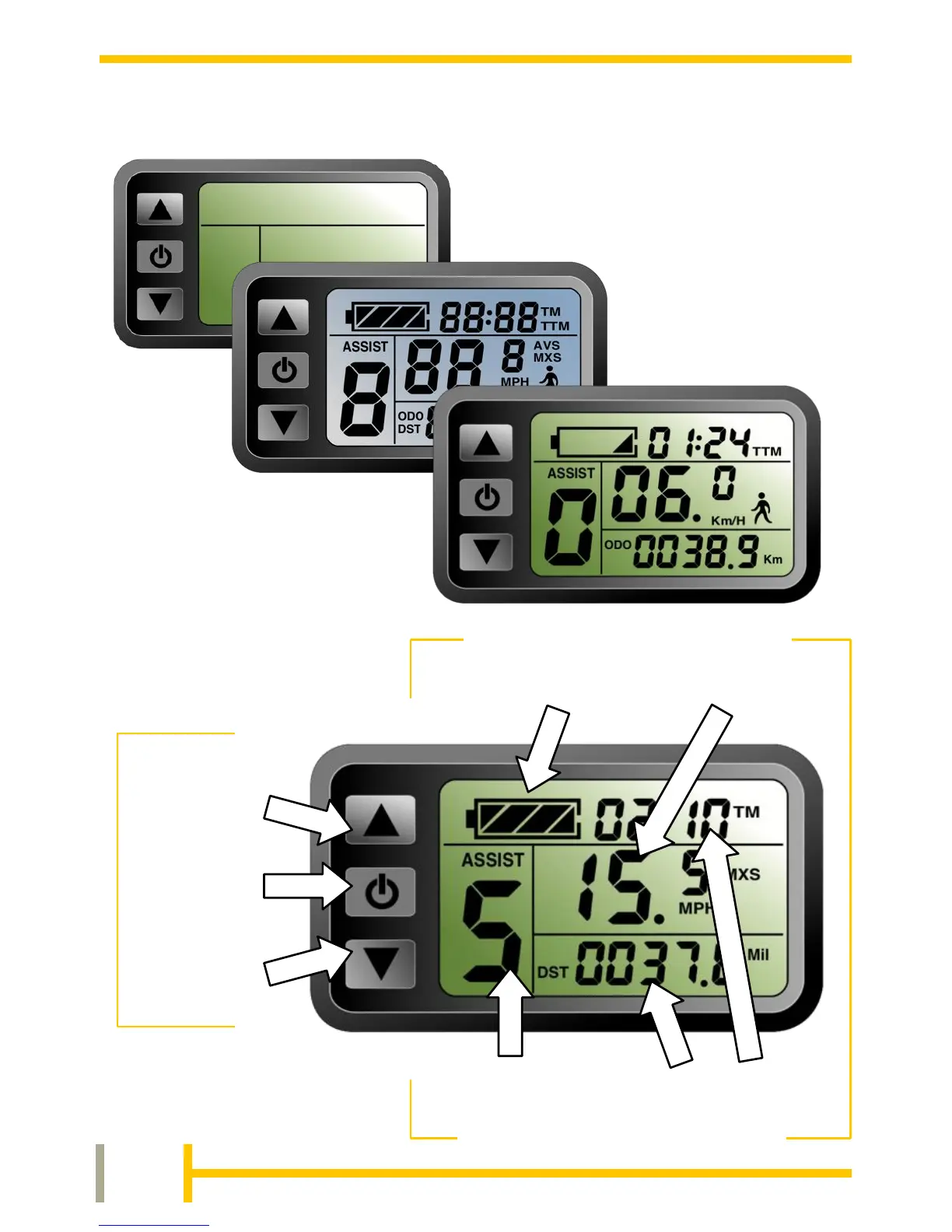 Batribike Diamond - Usage; Using the Bicycle as a Normal Pedal Cycle; LCD Display Overview