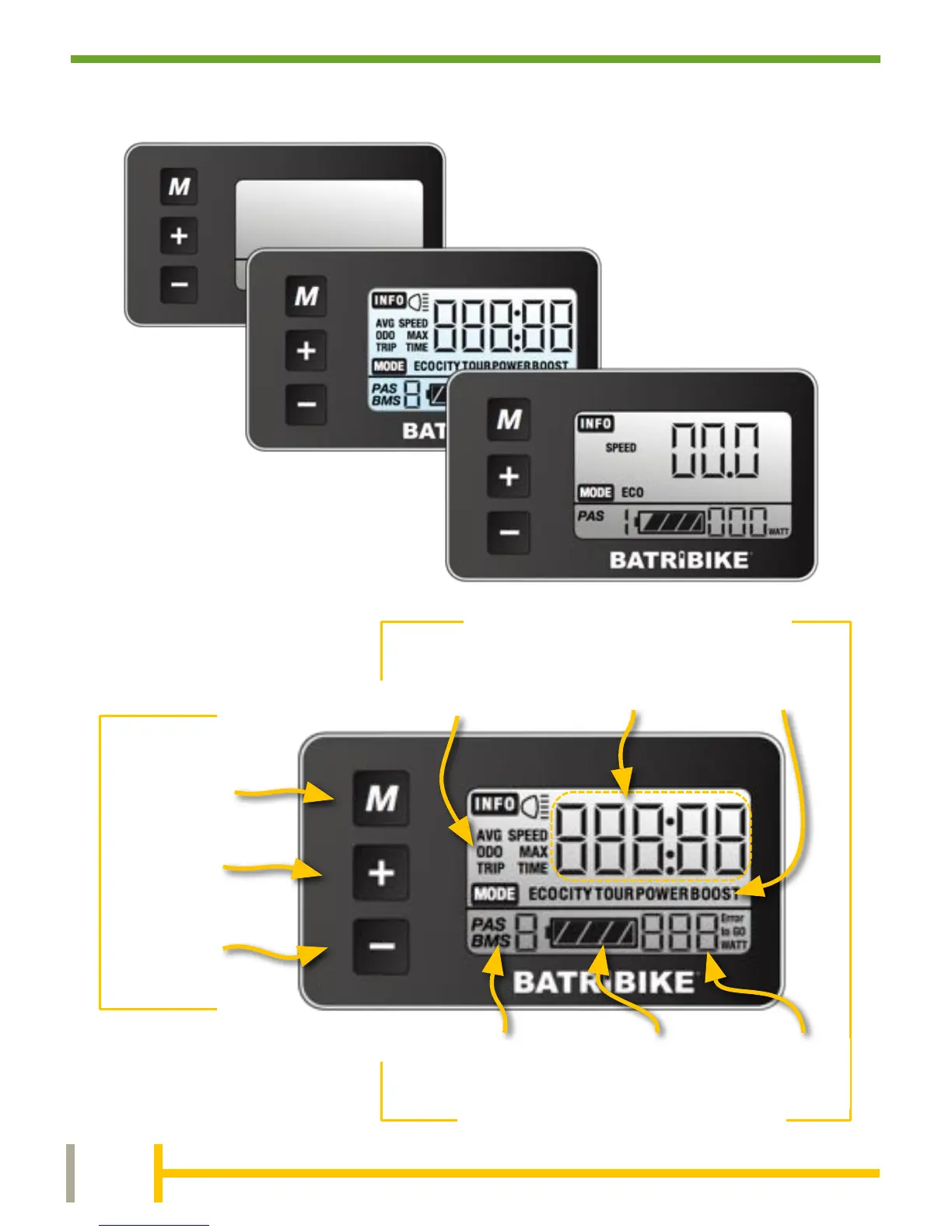 Batribike FALCON - USAGE; Display Controls Overview; Buttons