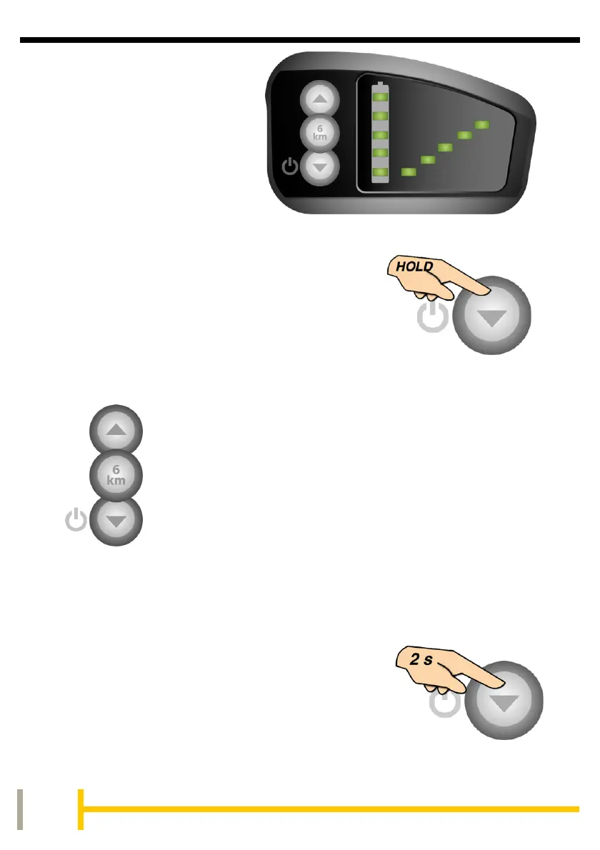 To turn off the LED and the power to the bike, press and hold the