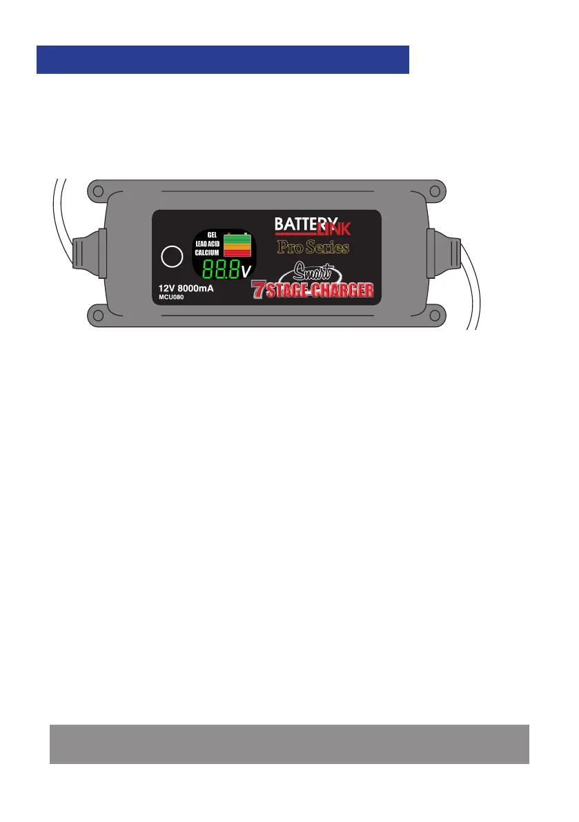 The MCU080 charger is a sophisticated 7 stage charger, utilizing switch mode and fully automatic