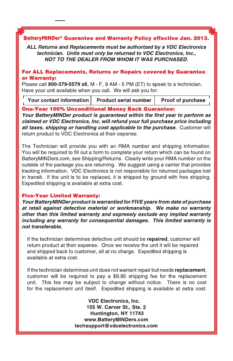 BatteryMINDer Plus 12117TC - Guarantee; Warranty; Warranty Registration