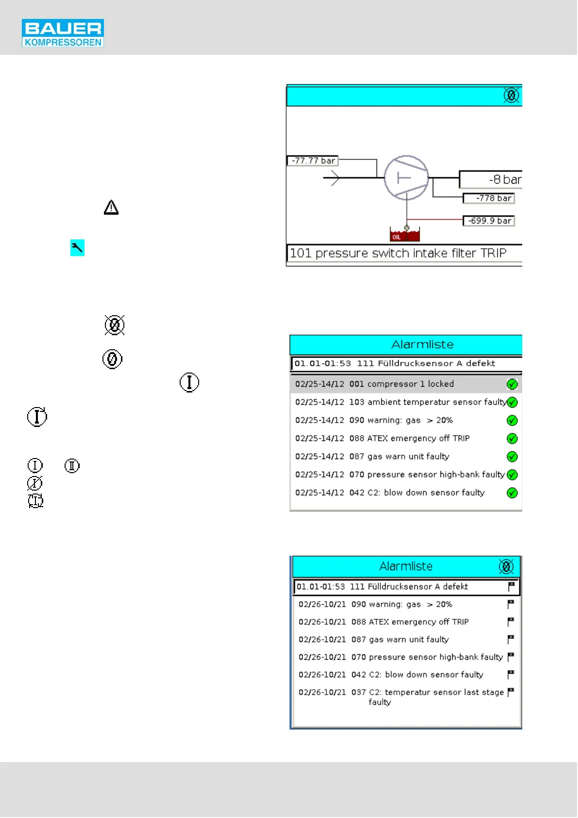 Fig. 44 Alarm list, not confirmed