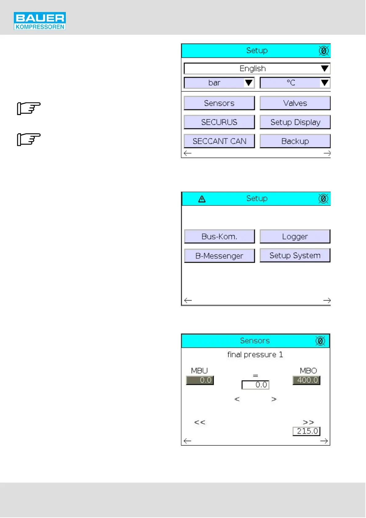 By scrolling in the sensors pages, the settings of the