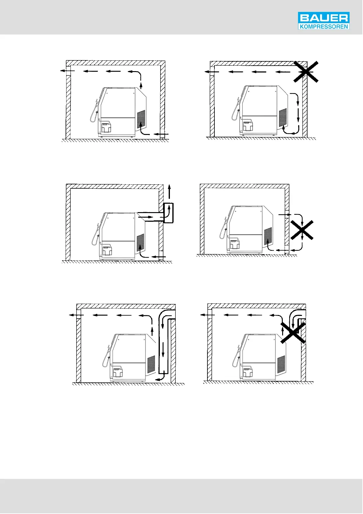 Correct: Air outlet duct upwards, cooling air
