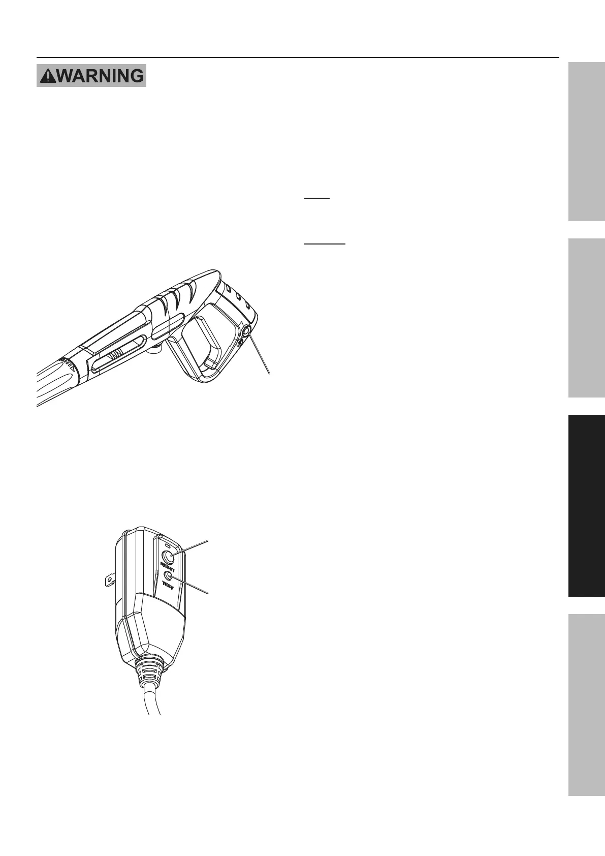 Interrupter (GFCI) before each use. The GFCI does not protect against electrical