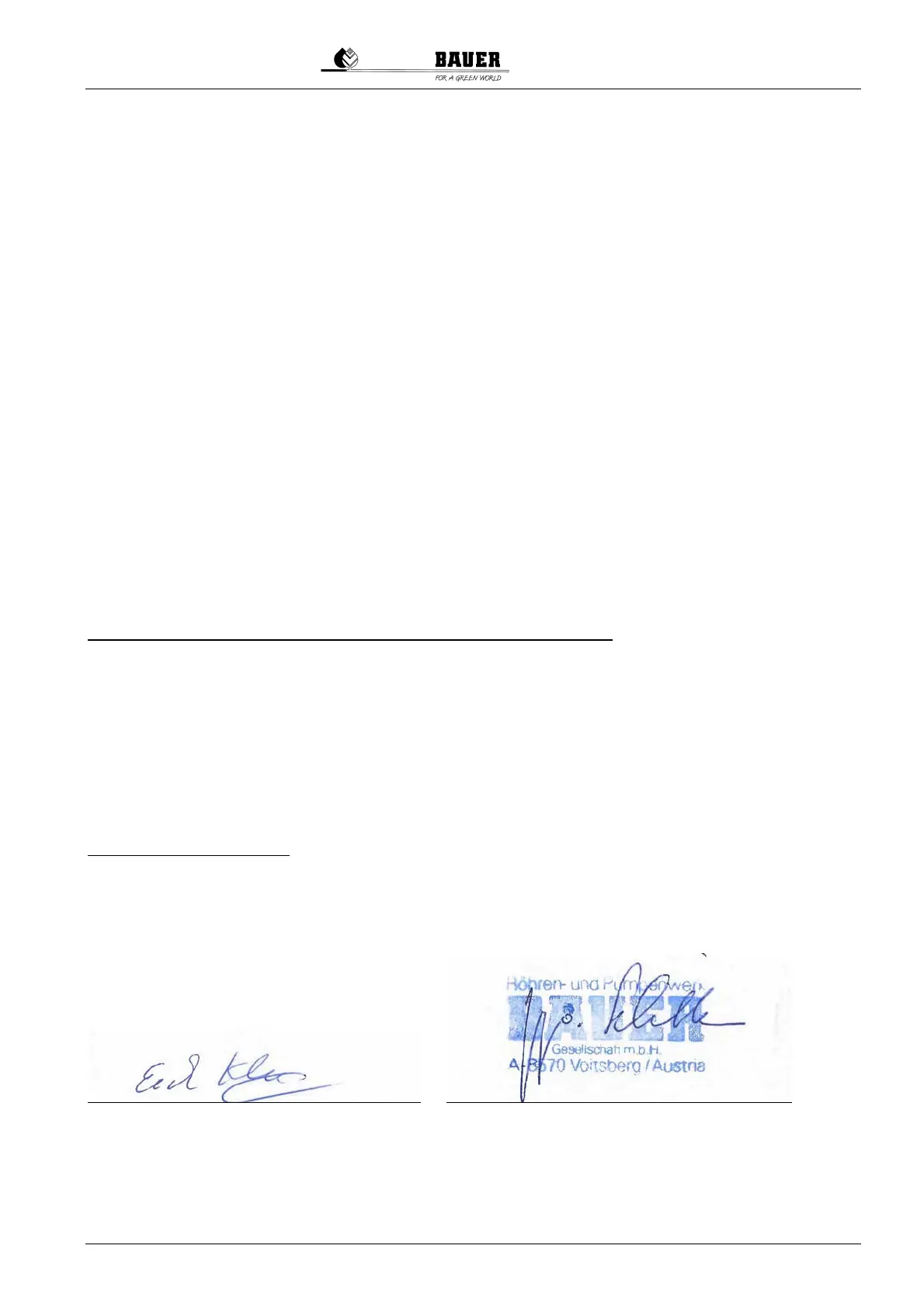 In case of a modification of the machine not accorded with BAUER GmbH, this declaration will