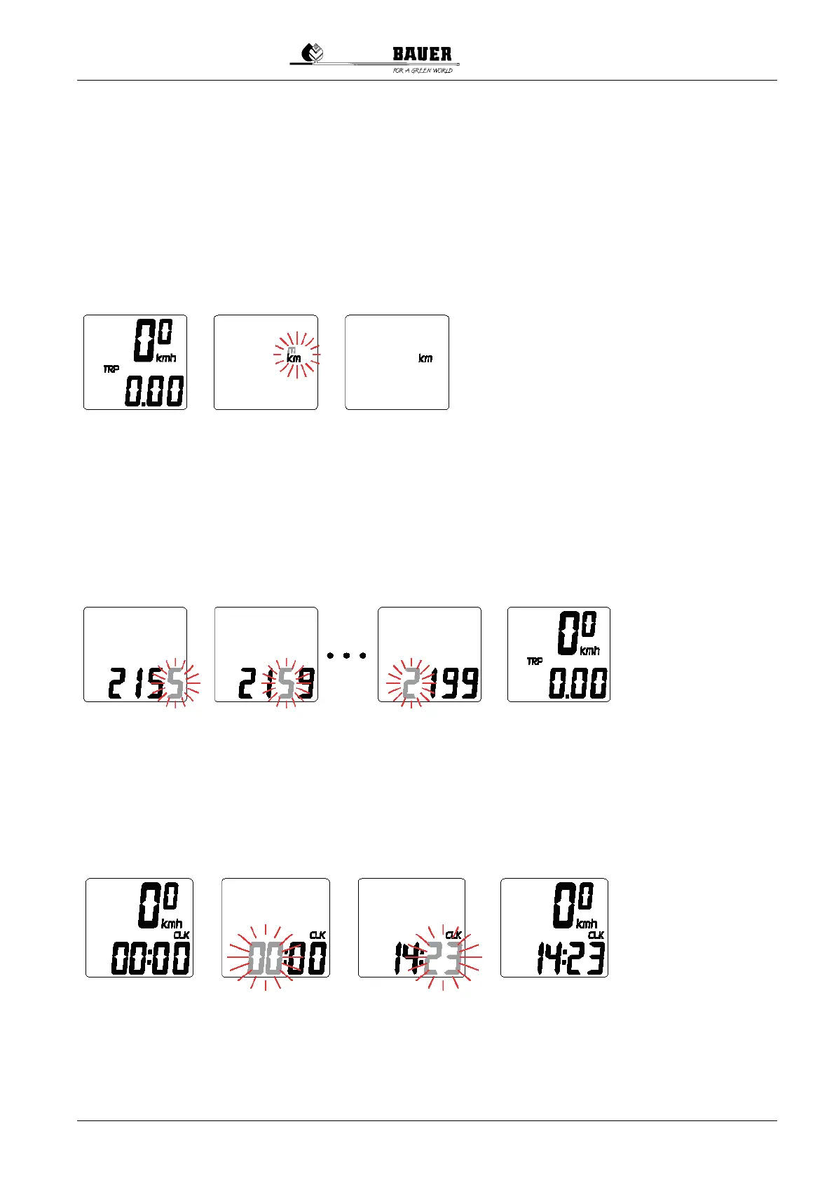 After selecting the unit – m or km – and pressing the SET key for confirmation, the computer changes