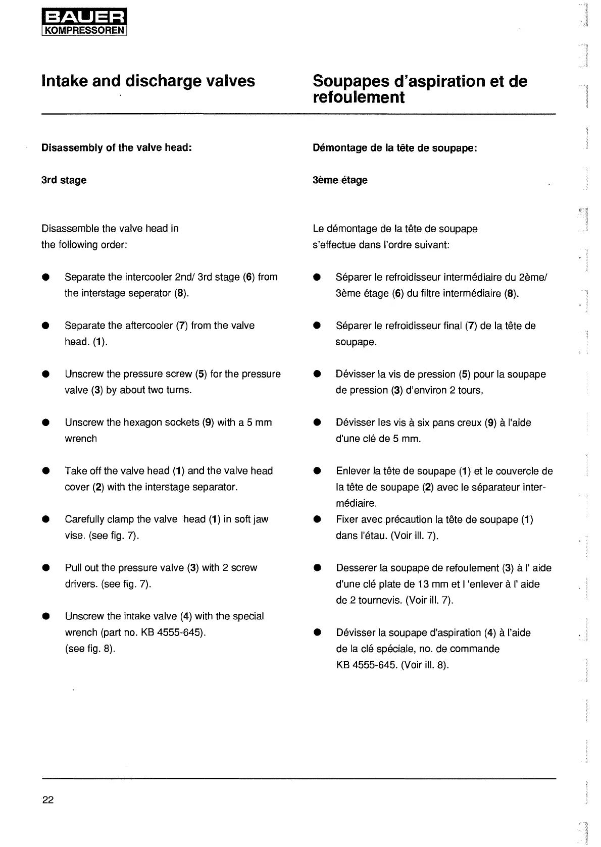 • Devisser la soupape d'aspiration (4) a l'aide