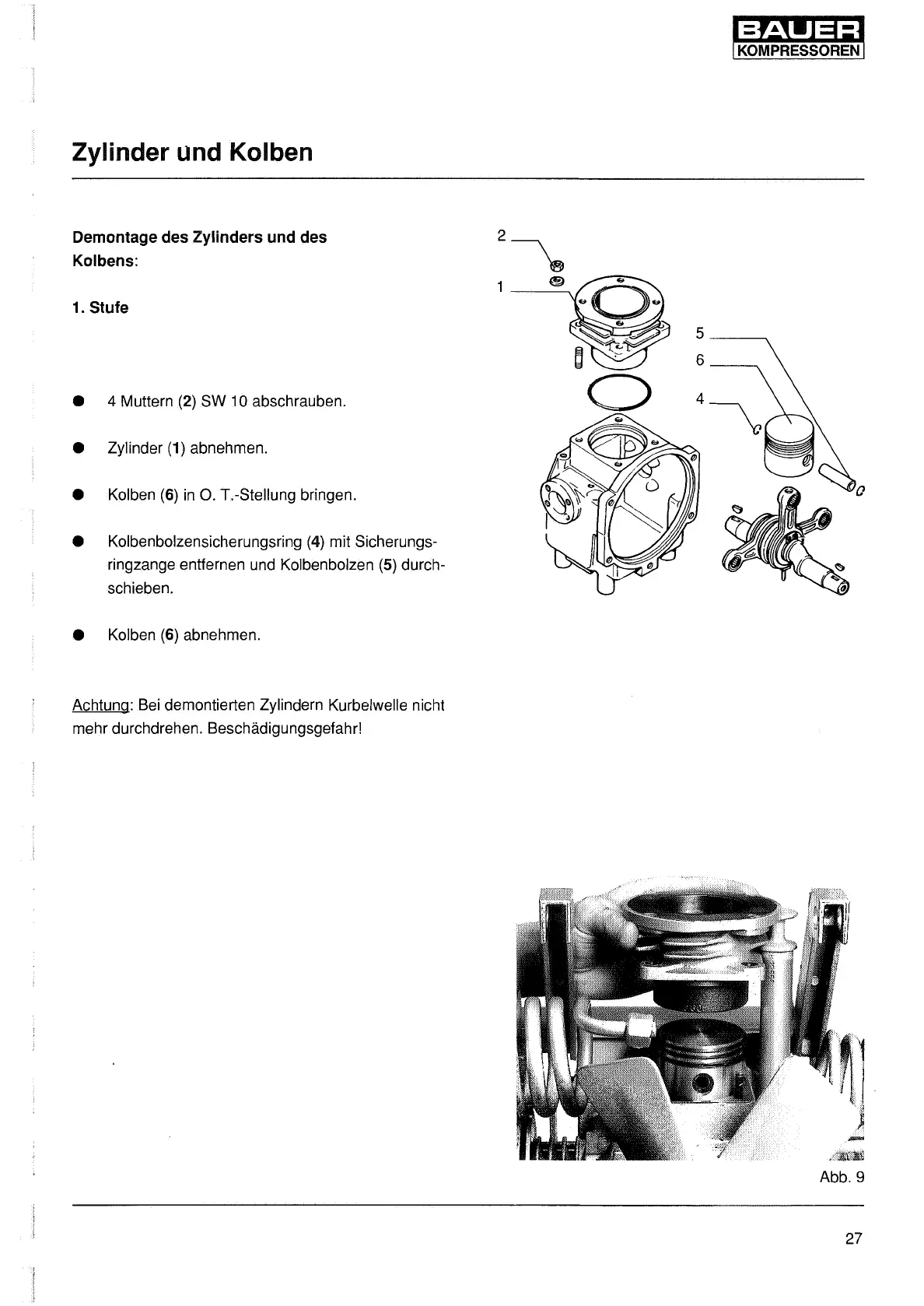 Achtung: Bei demontierten Zylindern Kurbelwelle nicht