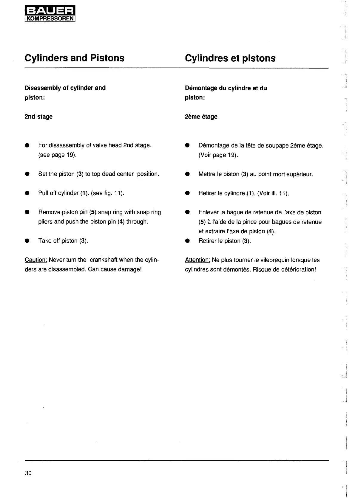 Caution: Never turn the crankshaft when the cylin-