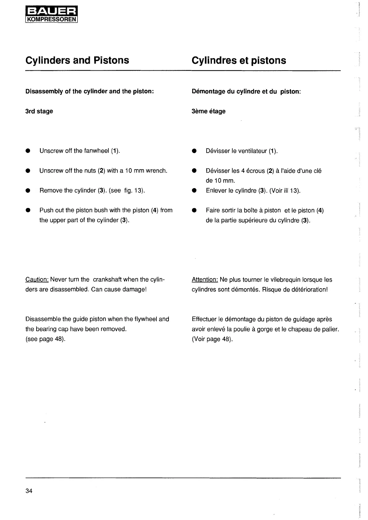 Attention: Ne plus tourner le vilebrequin lorsque les