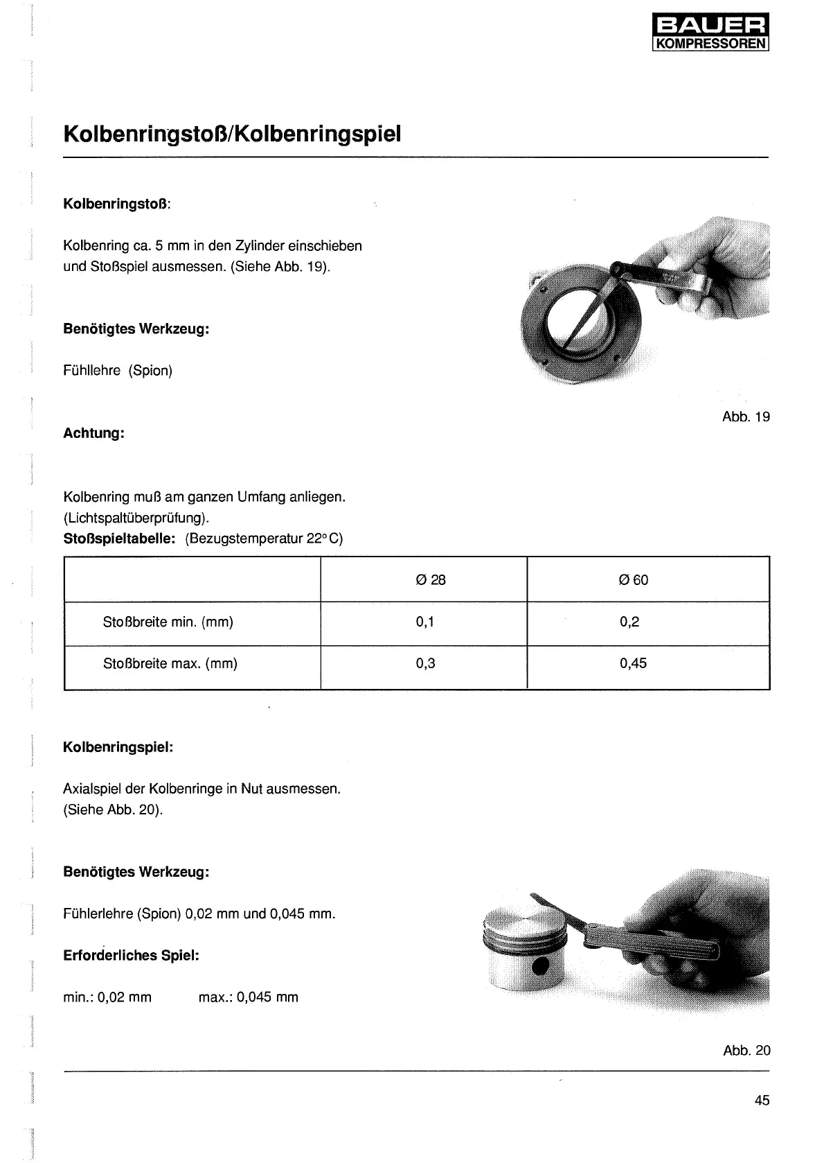 und StoBspiel ausmessen. (Siehe Abb. 19).
