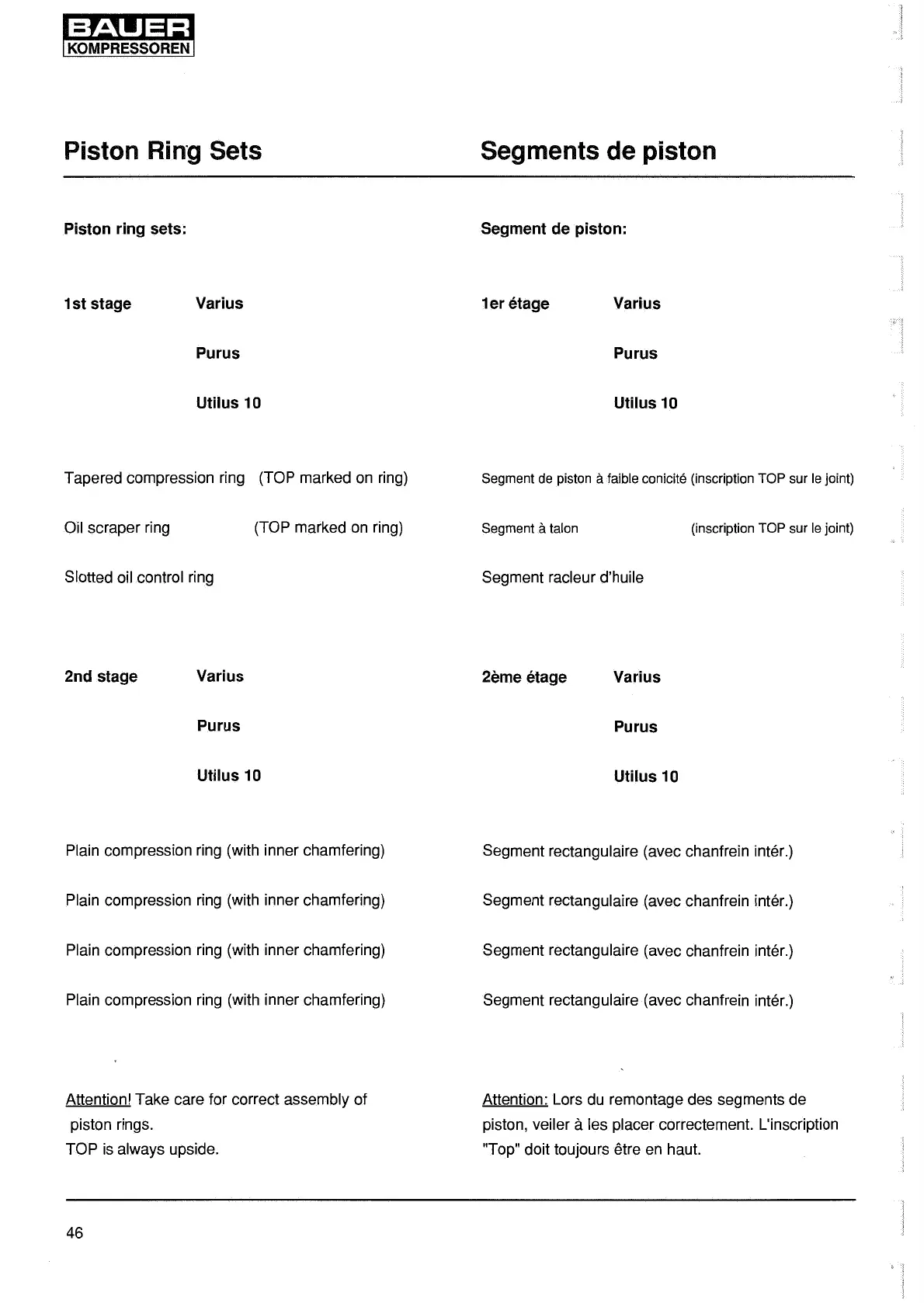 Tapered compression ring (TOP marked on ring)