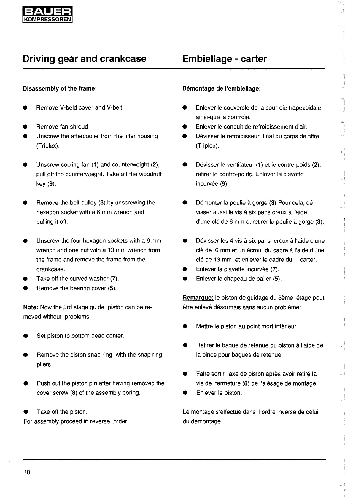 Demontage de l'embiellage: