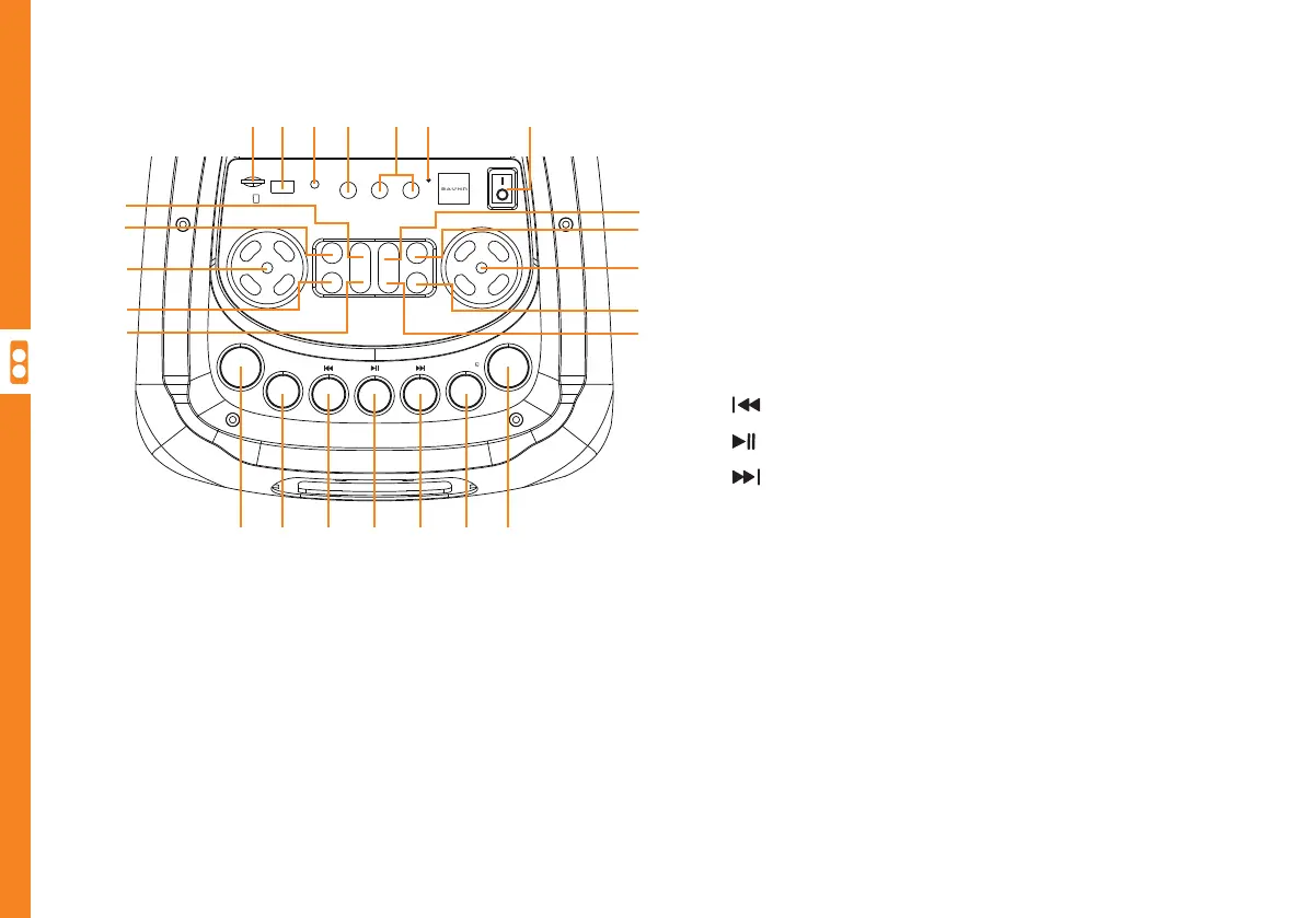 5 MIC 1/MIC 2: input for wired microphones (not included)