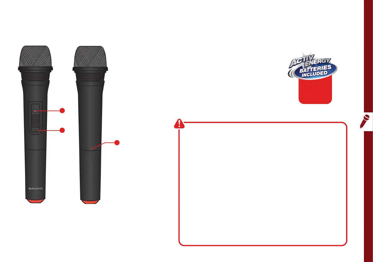 1 Battery indicator (red LED when mic is on)