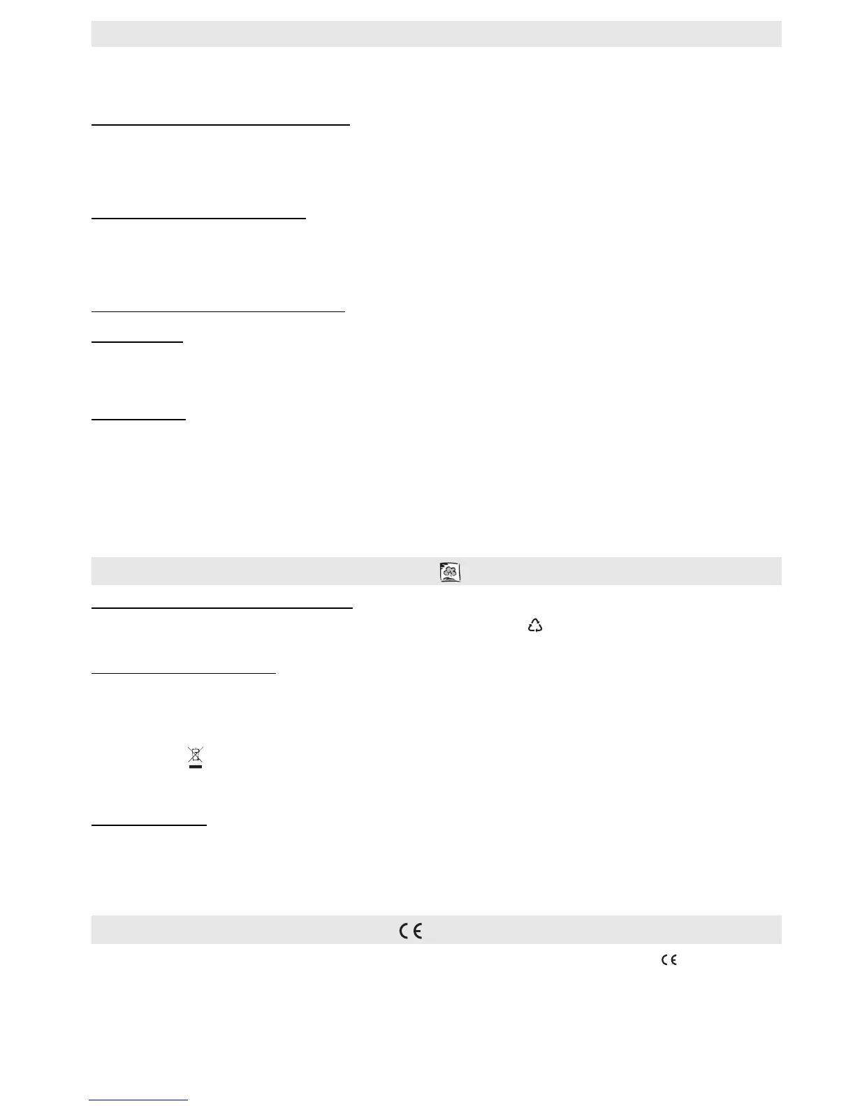 The packing material is 100% recyclable and is marked with the recycle symbol ( ). The various parts of the packing must