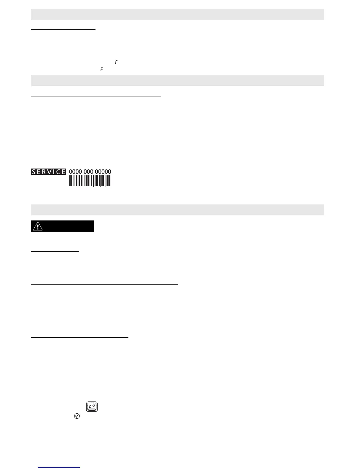 • the service number (number after the word Service on the rating plate), located on the right hand edge of the oven cavity