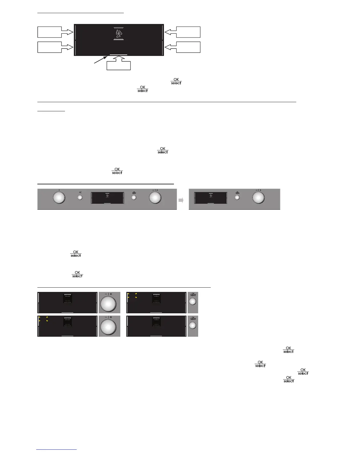 1. Si le four est éteint, tournez le bouton « Fonctions » ; les fonctions de cuisson ou les sous-menus correspondants