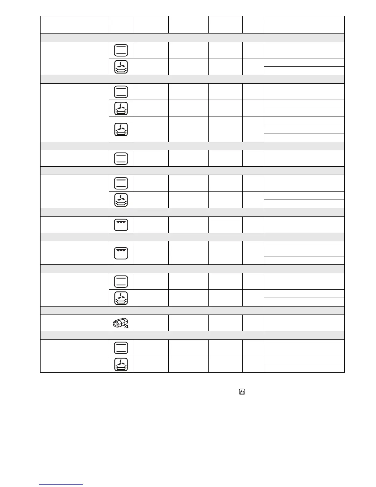 Tableau des recettes testées (conformément aux normes IEC 60350:99+A1:05 +A2:08 et DIN 3360-12:07:07)