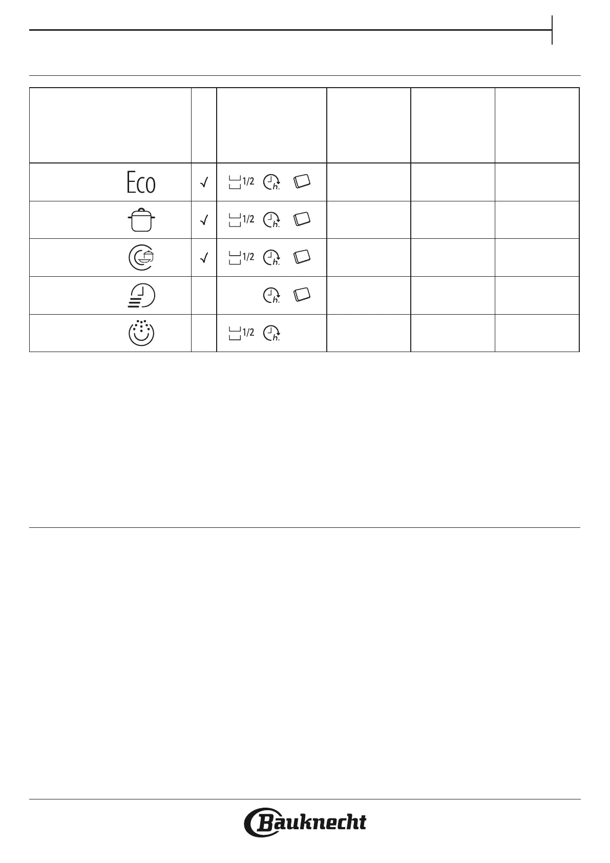**) Values given for programs other than the program Eco are indicative only. The actual time may vary depending on many factors such as temperature