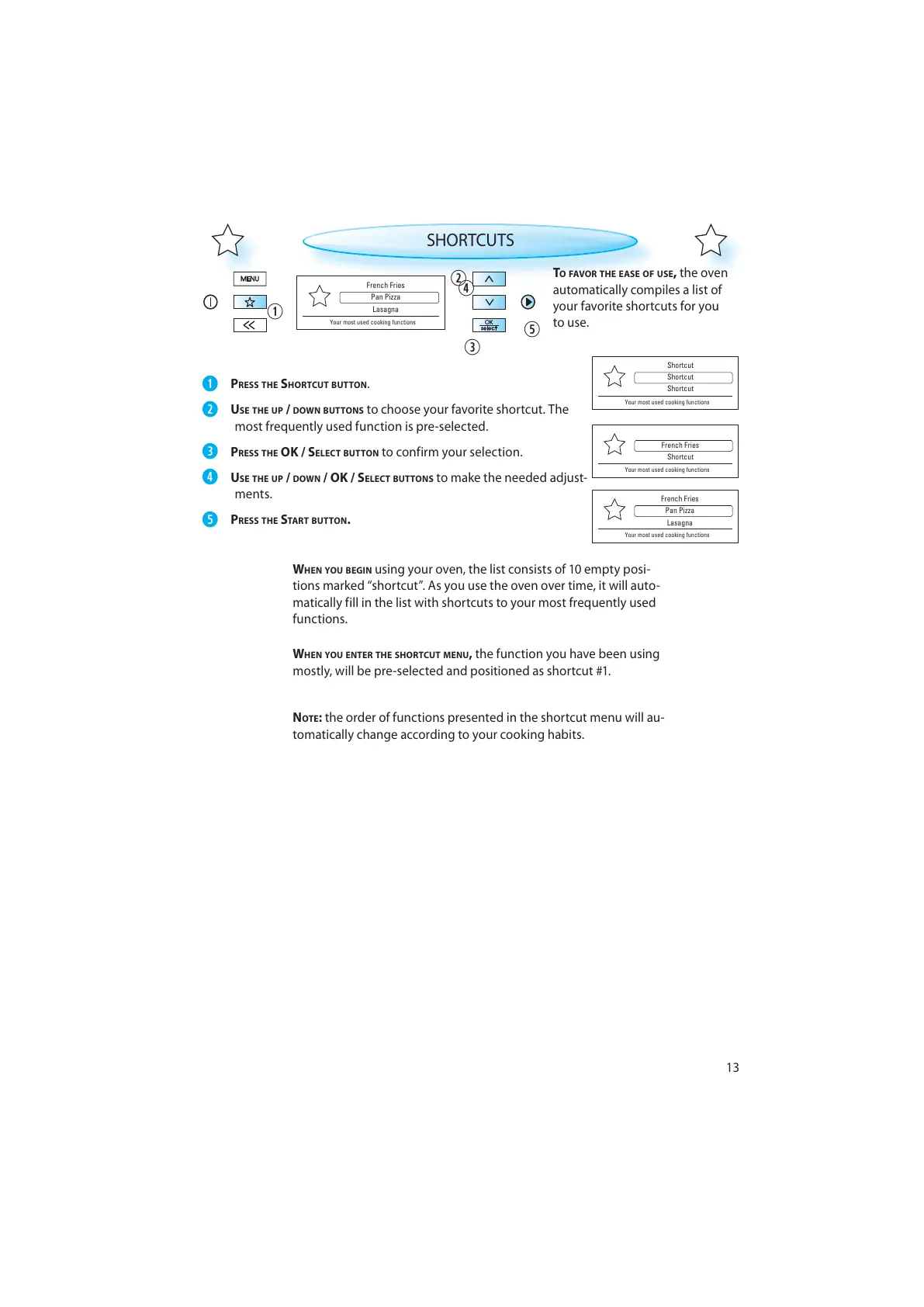 tions marked “shortcut”. As you use the oven over time, it will auto-