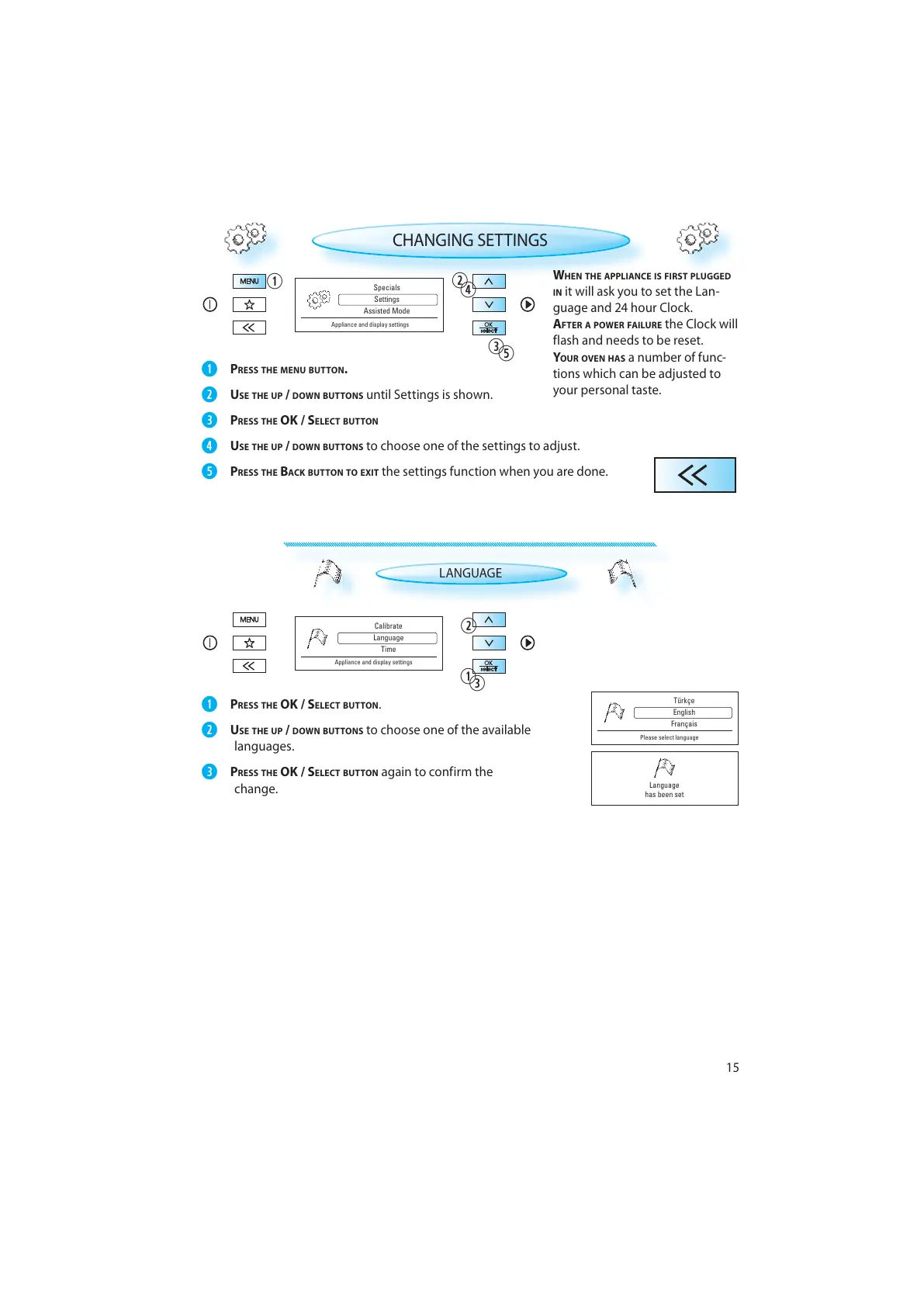 PRESS THE BACK BUTTON TO EXIT the settings function when you are done.