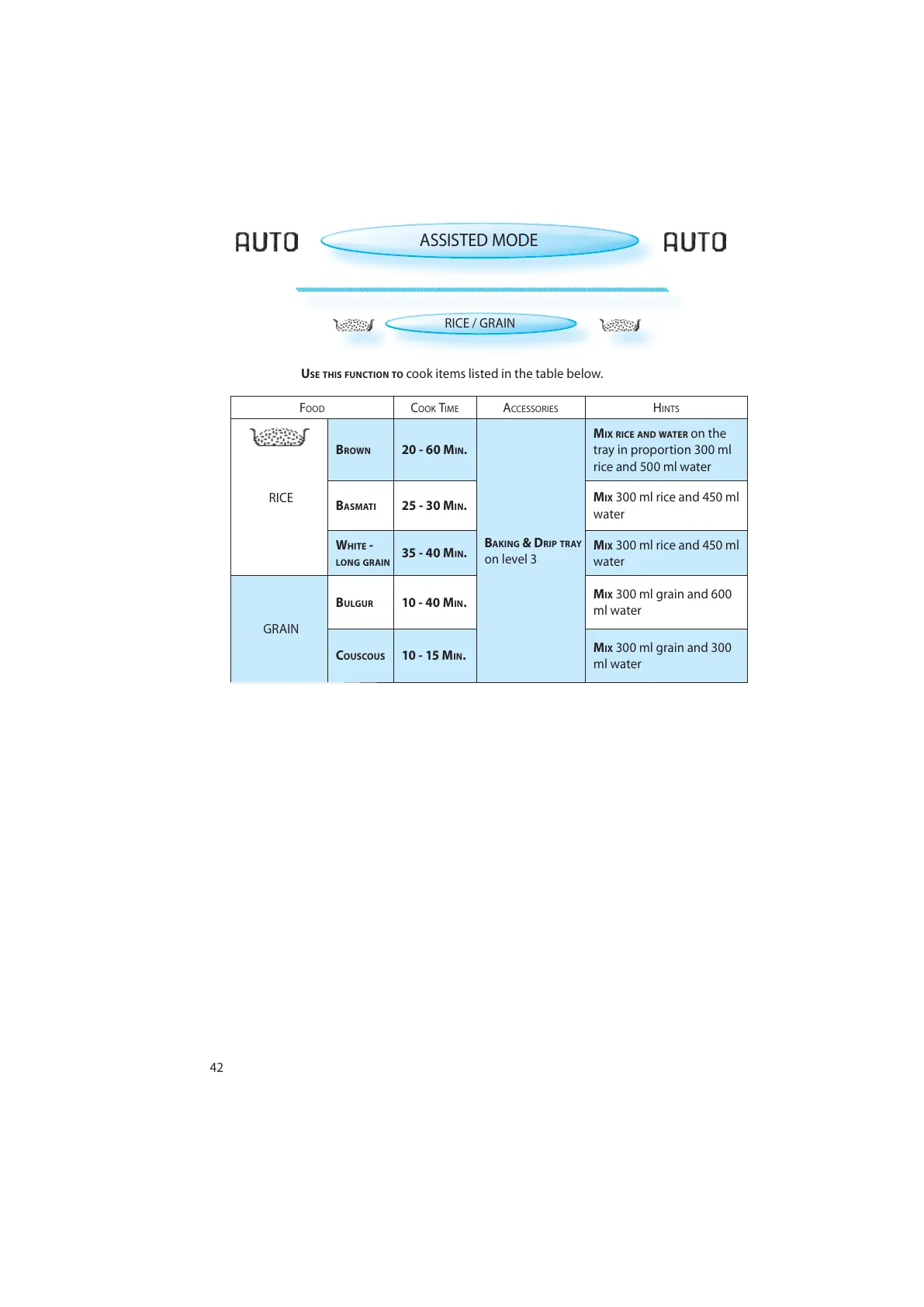 Bauknecht ECTM 9145 - Assisted Mode: Rice; Grain; Cooking Rice and Grains