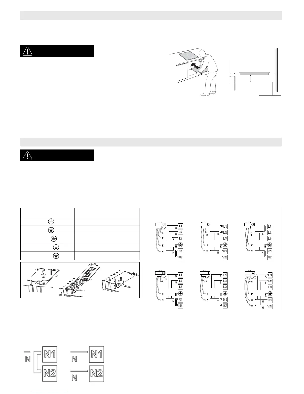 • Do not install the hob above a dishwasher or washing-machine, so that the electronic circuits do not come into contact with steam or moisture which could damage them.