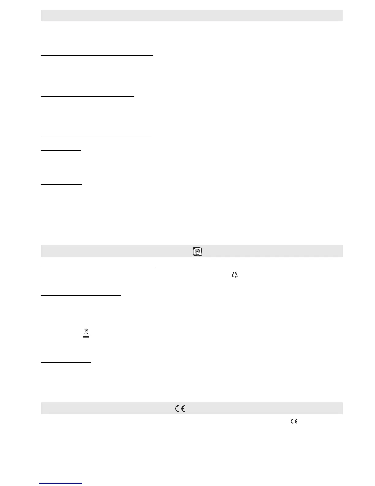 The packing material is 100% recyclable and is marked with the recycle symbol ( ). The various parts of the packing must