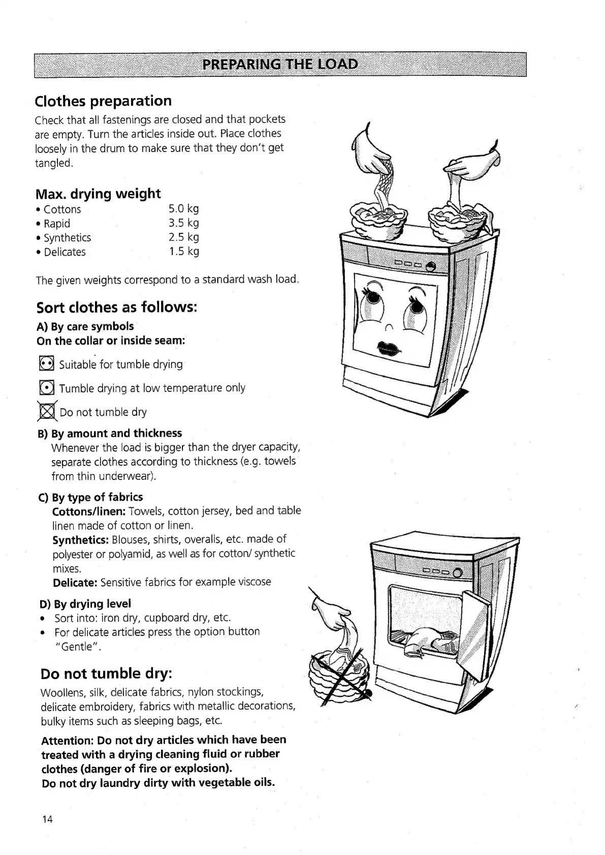 Bauknecht TRK 4821 - Preparing the Load for Drying; Clothes Preparation Steps; Sorting Laundry