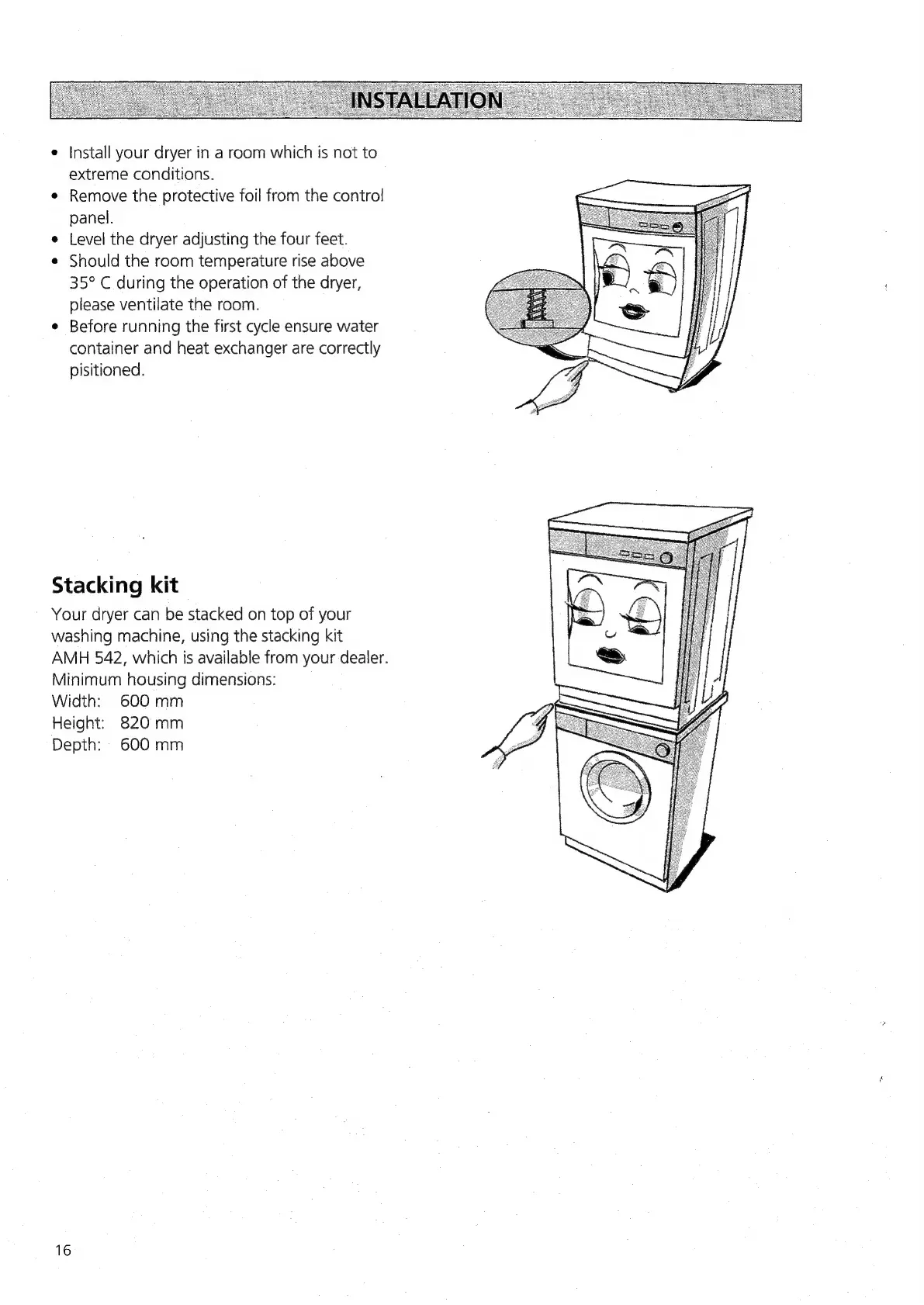 Bauknecht TRK 4821 - Dryer Installation; General Installation Guidelines; Stacking Kit Usage
