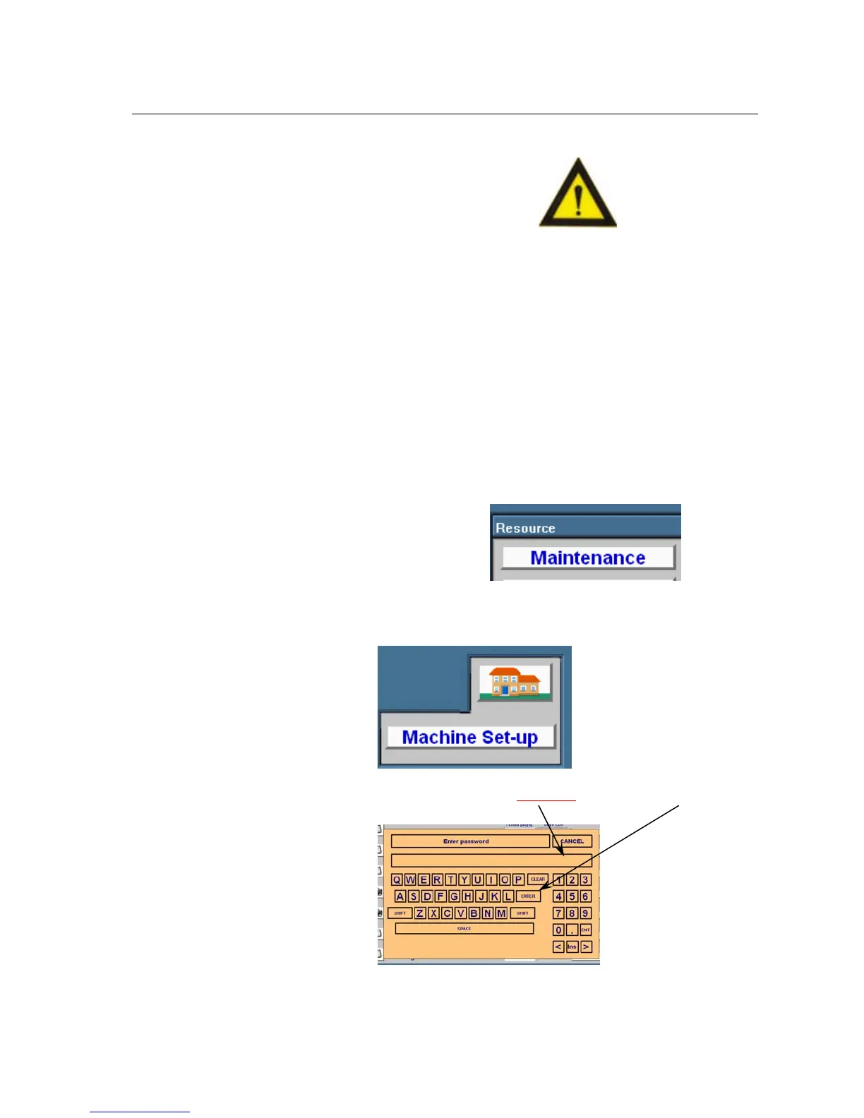 7.4 This will bring up the Maintenance screen. From the Maintenance page press the “Machine Setup”