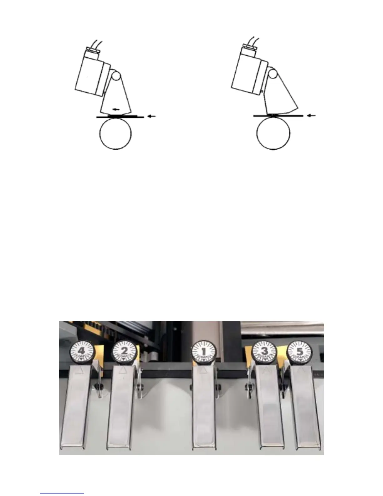 Another method for setting the folding rollers is to insert paper strips between them by touch, the pressure adjustment