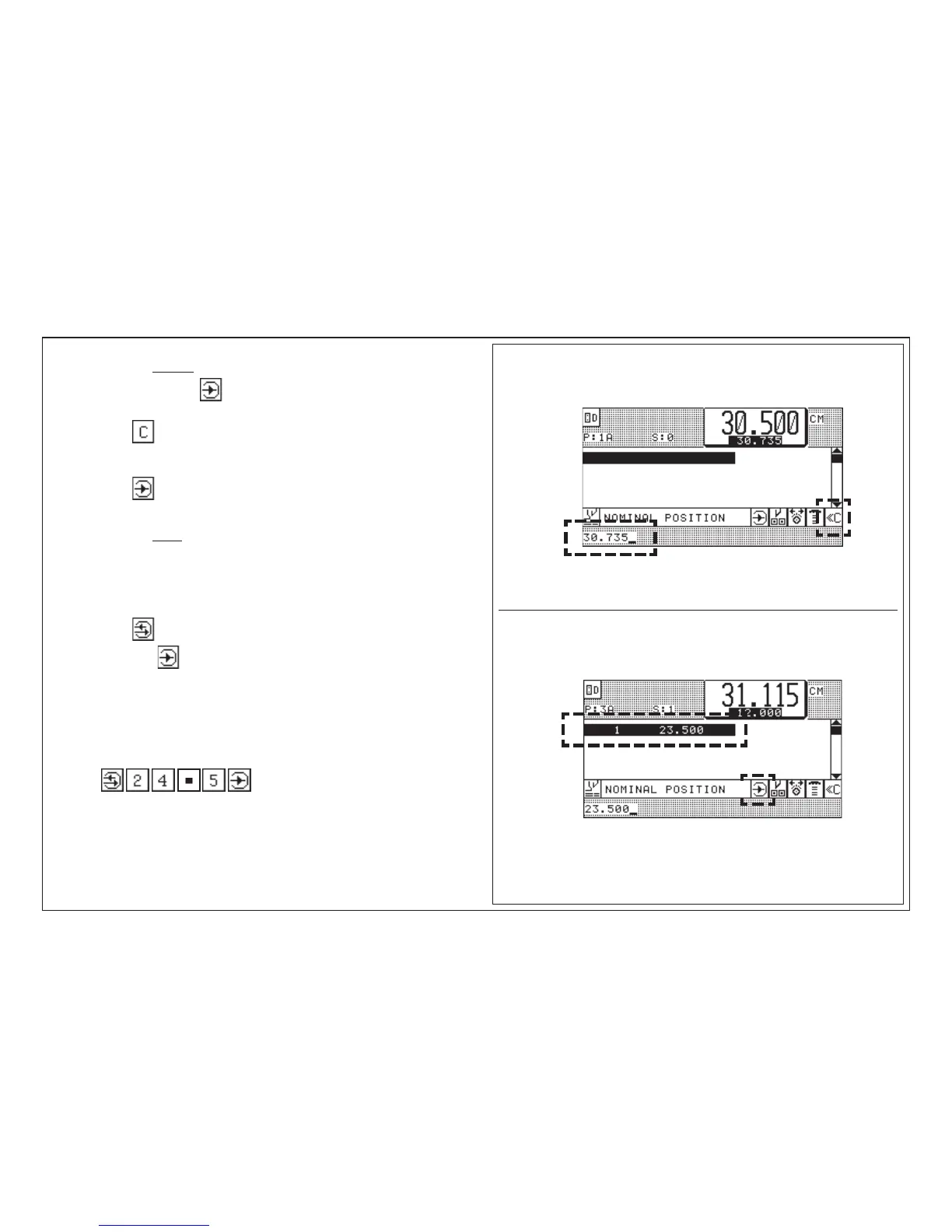 (prior to pressing of key "Enter" ; nom.pos. is shown in input section