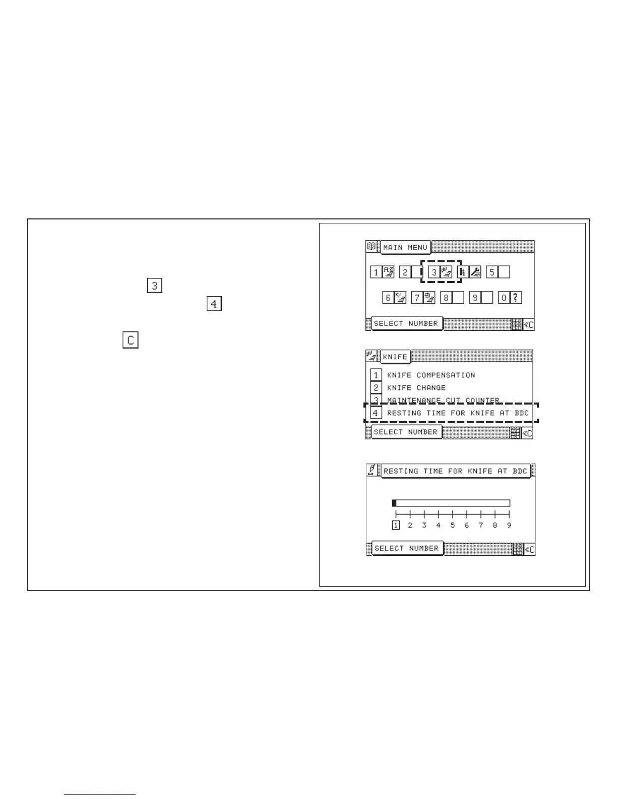 Adjustment of the time knife remains in its bottom dead center (BDC).