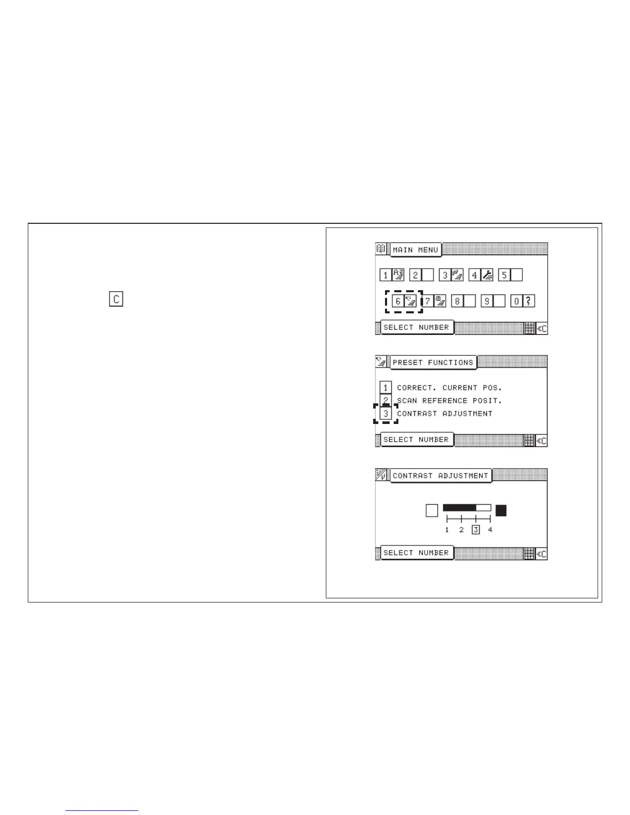 Enter step number of desired contrast (1-4) via keyboard.