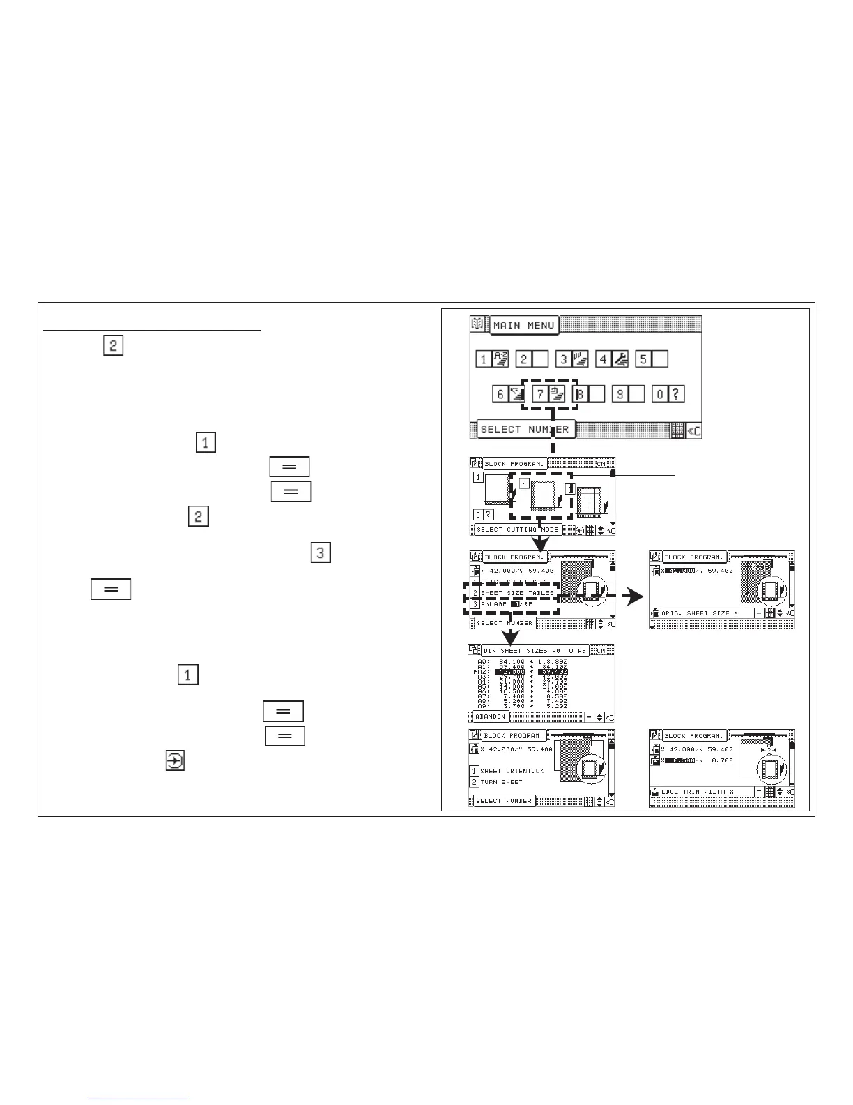 With this menu it is able to enter the original sheet size manually or to select a