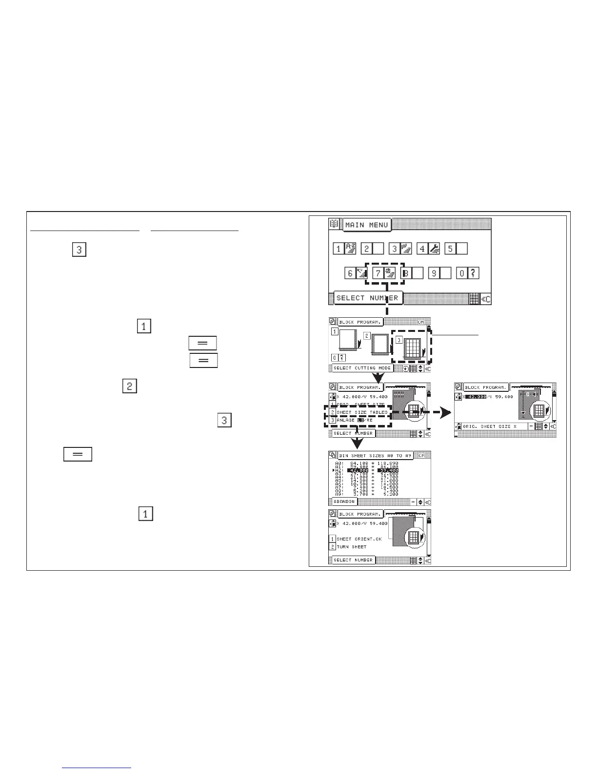 With this menu it is able to enter the original sheet size manually or to select a