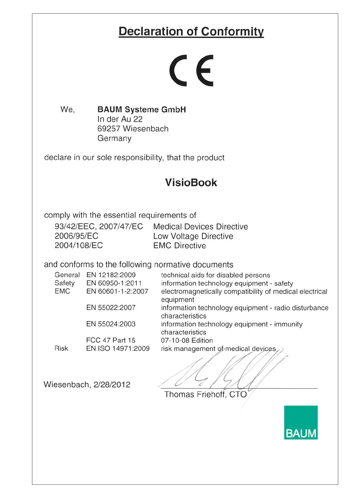 Baum VisioBook - Declaration of Conformity