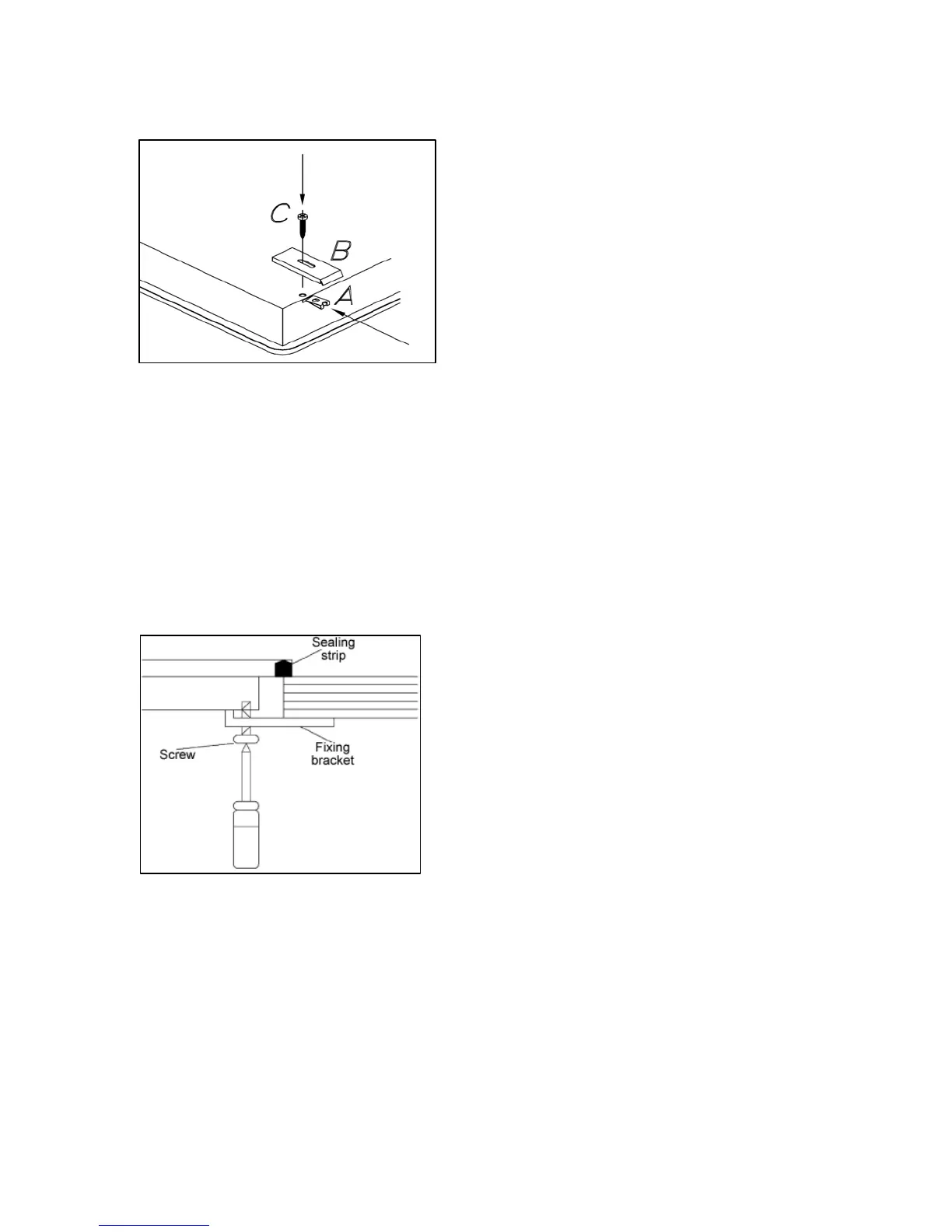 place a screw (C) through the hole and fixing bracket (B).